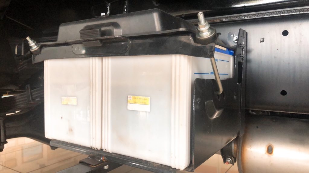 Bình ắc quy chính hãng với dòng điện mắc nói tiếp lên đến 24 V, bảo hành 12 tháng, xe nền trang bị 2 bình mắc nối tiếp với nhau. Trang bị giá đở chắc chắn, khô ráo tránh nước, tránh va chạm.