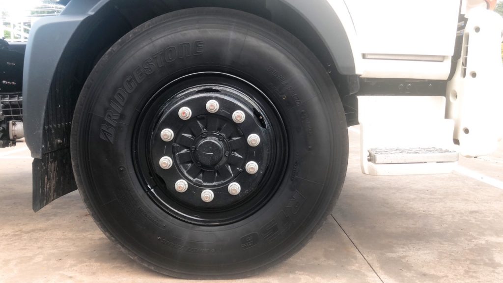 Bánh xe được Hino 500 sử dụng là bánh NYLONG hoặc YOKOHAMA, thông số bánh xe 11.00/R120 dùng cho cả trước sau bánh đều. Mâm đúc chịu lực tăng tuổi thọ độ bền kh xử dụng.